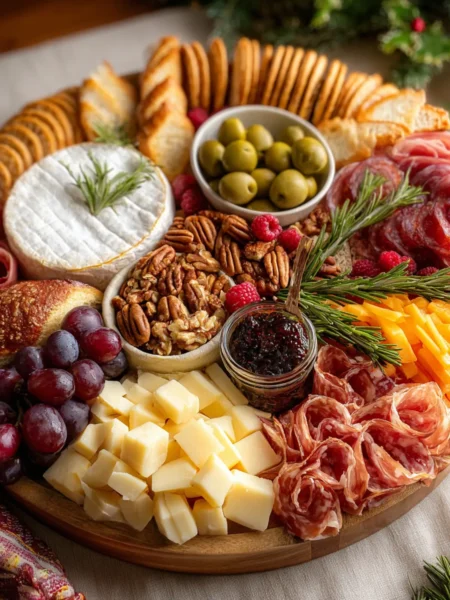 Festive Gourmet Charcuterie Wreath with Artisanal Cheeses and Savory Meats