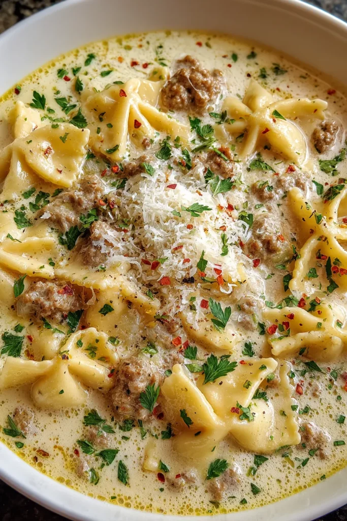 Alfredo Lasagna Soup is the kind of dish that feels like a cozy blanket on a chilly evening, wrapping you in creamy, savory goodness from the very first spoonful. This recipe takes all the best parts of classic lasagna—rich Alfredo sauce, tender pasta, and melting cheeses—and transforms them into a soul-warming soup that’s perfect for busy weeknights or casual dinners with friends. The flavors of Italian sausage mingle beautifully with minced garlic and sweet onions, while a hint of dried herbs brings a subtle earthy note. Every bite delivers that familiar comfort you expect from your favorite Italian dish, but with the added ease of a one-pot meal that’s ready in just over half an hour.