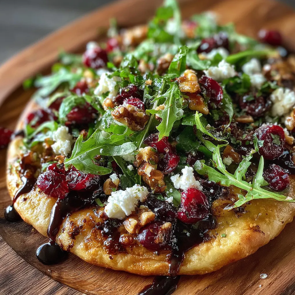 Experience a symphony of flavors as tangy cranberries burst in balsamic glaze, creamy goat cheese melts into a crisp flatbread, and fresh arugula adds a peppery bite. Sprinkle toasted nuts for extra crunch and serve warm.