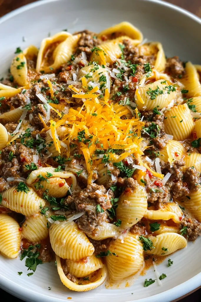 Rich ground beef, tender pasta shells, and a luscious creamy sauce come together in this heartwarming dish that’s perfect for family dinners or weeknight meals.