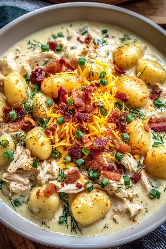 Over the years, I’ve made this recipe countless times—from cozy weeknight meals to impromptu dinner parties. My friends always ask for the secret behind that velvety sauce, and I tell them it’s the perfect blend of heavy cream, cream cheese, and shredded cheddar cheese melting together under low heat. The addition of dried dill brings a subtle freshness, while green onions add a pop of color and mild bite. Don’t forget the bacon—that savory crunch transforms this dish into an unforgettable experience. Whether you’re looking for a one-pot wonder to impress your family or a satisfying lunch that reheats beautifully, this Creamy Crack Chicken Gnocchi will become your go-to comfort food in no time.