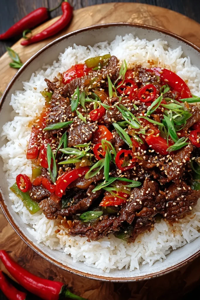 Crispy Chilli Beef Rice is more than just a meal; it’s a weeknight hero, a crowd-pleaser, and the solution to flavor fatigue. From the moment you dust that beef in cornflour and five-spice to the final sprinkle of sesame seeds, every step builds into a dish that’s vibrant, crunchy, and irresistibly sweet-spicy. With prep time of just 20 minutes, a quick 15-minute cook, and only a 5-minute rest, this beginner-friendly recipe delivers maximum taste with minimal fuss. Whether you’re craving a zesty dinner for two or feeding a hungry family at lunch, you’ll appreciate how this dish caters to busy schedules without compromising on excitement. And at roughly 450 calories per serving, it’s a balanced option that keeps both bellies and tastebuds happy.