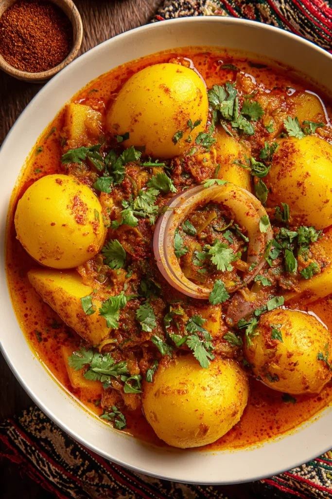 Experience the comforting blend of tender potatoes and caramelized onions in this aromatic Persian curry. Perfectly spiced, it's a dish that warms both heart and soul.