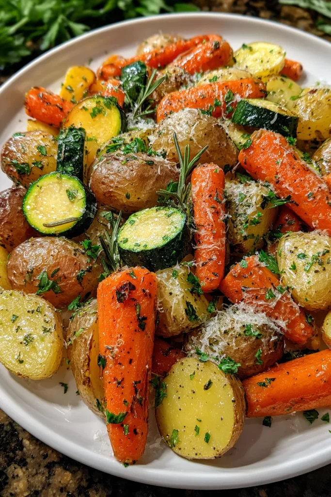 Garlic Herb Roasted Potatoes, Carrots, and Zucchini