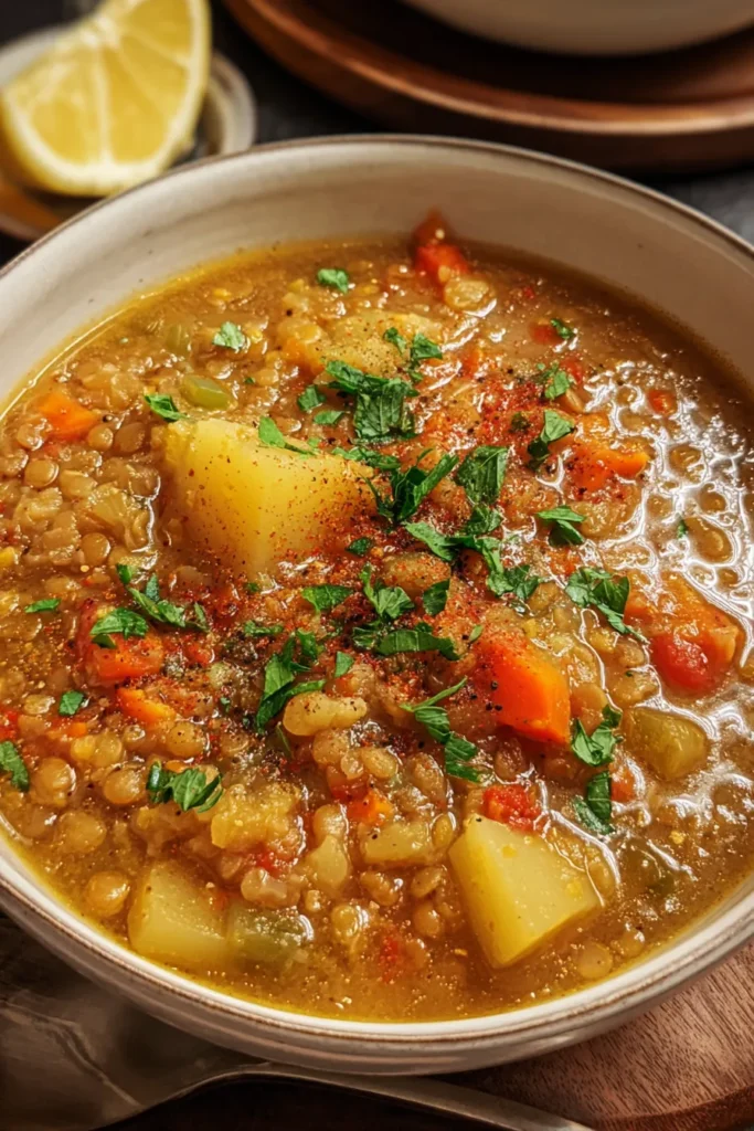Warm up your kitchen with this soul-soothing bowl of goodness that marries the earthiness of lentils with the comforting bite of tender potatoes. Each spoonful delivers a symphony of vibrant spices—smoky paprika, warm cumin, and a gentle whisper of turmeric—that dance together in perfect harmony. The savory base of onions, garlic, carrots, and celery softens into a rich foundation, tying everything together under a mellow, flavorful umbrella. As a home cook, I’ve learned that the beauty of this soup lies in its simplicity: humble ingredients transform into a dish that feels luxurious, yet it’s totally achievable even if you’re just starting your soup-making adventure.
