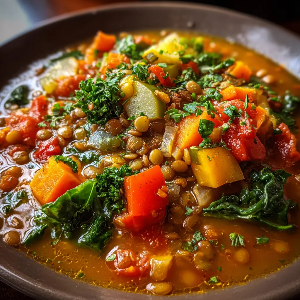 Hearty Spiced Lentil Soup with Fresh Vegetables