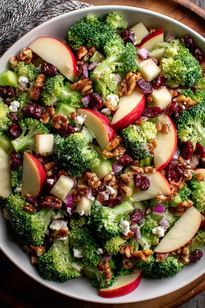 This Honeycrisp Apple Broccoli Salad is a shining example of how fresh, wholesome ingredients can come together in perfect harmony. From the crisp garden green of broccoli florets to the bright, juicy crunch of Honeycrisp apples, every component plays a role in creating a symphony of flavors and textures. We’ve walked through each key ingredient—nutritious walnuts, tangy feta, sweet-tart cranberries—and seen how they contribute to a salad that’s as visually stunning as it is palate-pleasing. With just fifteen minutes of prep, zero cooking time, and a short thirty-minute chill, this recipe proves that healthy eating doesn’t have to be complicated. Whether you’re serving it as a lunch, a light dinner, or an appetizer at a gathering, this salad adapts effortlessly to any occasion, offering 320 calories of satisfaction per serving.