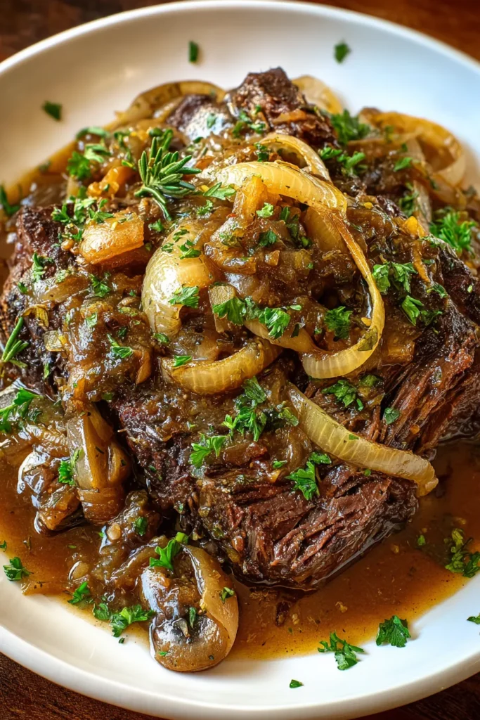 Cooking this Juicy French Onion Pot Roast is more than just following a recipe—it’s an invitation to create memories around the dinner table. From the moment the beef sizzles in the pot to the final drizzle of caramelized onion gravy, each step builds anticipation and fills your home with comforting warmth. This dish brings together simple pantry staples and transforms them into a rich, luxurious meal that’s perfect for Sundays, holiday gatherings, or any time you long for a taste of classic comfort food. Feel free to print and save this article for your personal collection, tucking it into your favorite cookbook or slipping it onto the fridge for easy access. And don’t forget that there’s an FAQ below to help you troubleshoot common questions and make your cooking experience as smooth as possible.