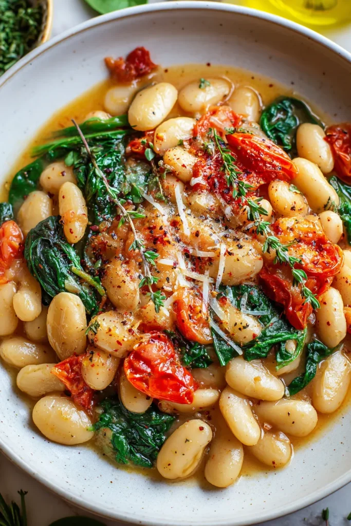 8. Sprinkle the grated Parmesan cheese over the top just before serving, allowing it to melt slightly into the beans. The cheese creates a creamy, umami-rich layer that makes each spoonful extra indulgent.