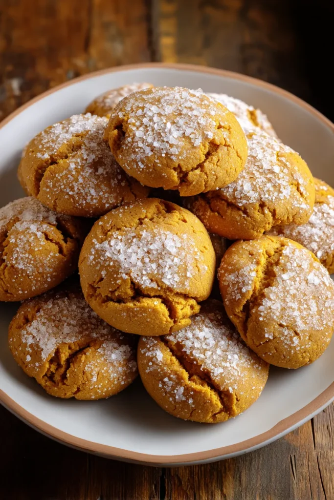 Place the cookies on a decorative tray with festive garnishes like cinnamon sticks and orange slices. The bright orange hues of the pumpkin will pop against greens and reds for a holiday-ready dessert table.
