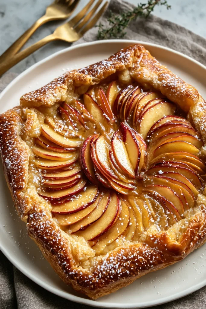 Not only is this tart ridiculously easy to make, but it also boasts quick preparation and bake times—just 15 minutes to prep, 35 minutes to bake, and a short 10-minute rest before slicing. At around 320 calories per serving, it’s a treat that won’t feel too indulgent. Whether you’re hosting a fall gathering, a cozy get-together by the fire, or simply craving a sweet afternoon pick-me-up, this Rustic Spiced Baked Apple Tart is your new go-to. The flaky layers of puff pastry cradle tender, cinnamon-kissed apples, with a sprinkle of coarse sugar on top for that extra sparkle and crunch. Trust me, you’ll want to save this recipe for every season’s apple harvest and cozy moments ahead.