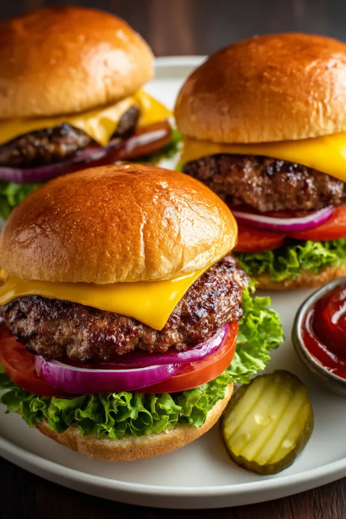 To create these mouthwatering burgers, each component plays an essential role in building layers of flavor, texture, and melt-in-your-mouth juiciness. From the seasoned beef base to the crisp toppings and soft buns, here’s what you’ll need: