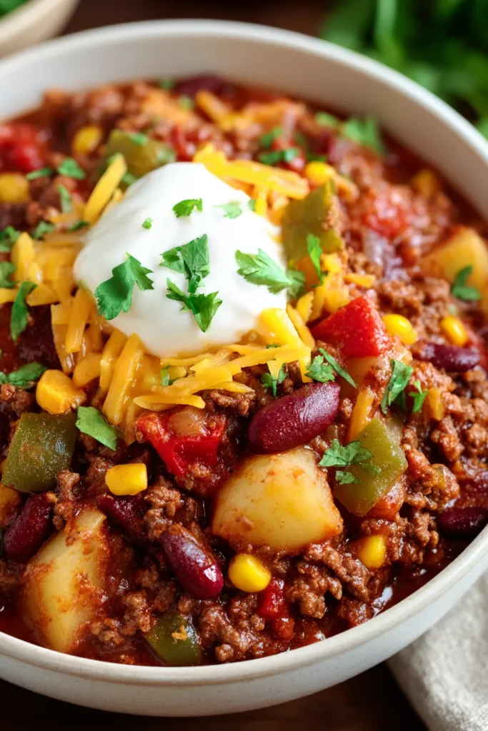 Not only is this dish a delight to the taste buds, but it also checks a lot of boxes for the modern home cook. You’re working with pantry staples—corn, beans, spices—and fresh produce like onions, peppers, and cilantro if you choose. The moisture-rich tomatoes with green chilies infuse every bite with a subtle kick, while smoked paprika and cumin add layers of warmth and complexity. As the potatoes slowly soften and absorb all those juices, they become little pillows of flavor. And let’s not forget that final, glorious layer of shredded cheddar cheese, melting into molten ribbons that tie everything together. Whether you’re serving guests or feeding your own crew, this cheesy, hearty meal embodies what “easy dinner” dreams are made of.