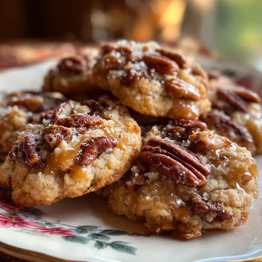 Soft, pillowy cookies studded with toasted pecans, their buttery crunch balanced by ribbons of warm caramel sauce—each bite melts on your tongue with cozy, sweet flavor.