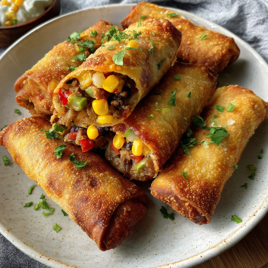 Southwestern Egg Rolls with Avocado Ranch are the perfect marriage of crunchy, golden wrappers and a vibrant, zesty filling that’s bursting with seasoned chicken, sweet corn, black beans, and gooey cheese. These handheld bites bring game-night freshness and weeknight convenience together, all dunked in a smooth avocado-cilantro ranch. Ready to spice up your dinner routine with this fun twist? Dive in and let’s get rolling!