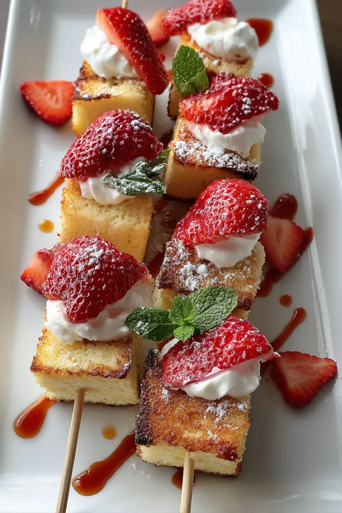 9. Enjoy your delicious Strawberry Shortcake Kabobs right away, savoring the interplay of textures and flavors in every bite!